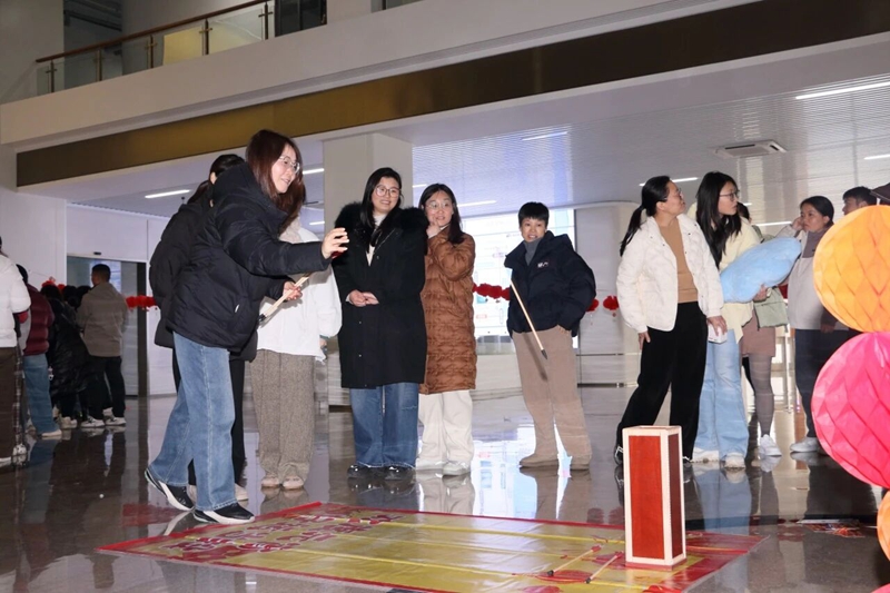 投壶作为传统民俗游戏,深受大家喜爱。活动现场设置专属投壶区域,限定箭数,规则清晰易懂,大家有序排队、轮番上阵,屏息凝神、抬手投箭,动作干脆利落。每一次投中都引来周围同事的阵阵喝彩,投中3枚即可解锁精美奖品,更是激发了大家的参与热情。